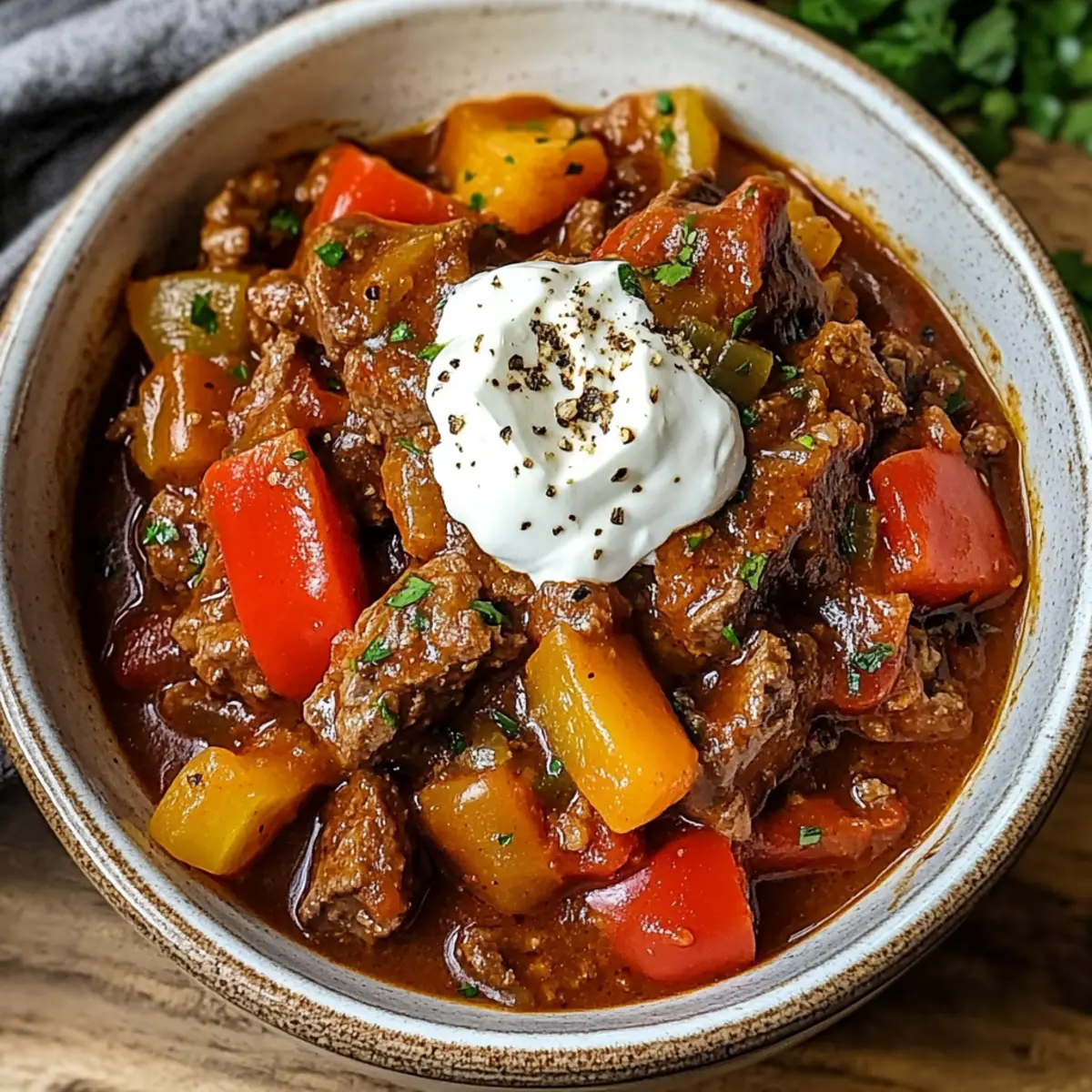 - Scharf: Füge frisch gehackte Jalapeños oder eine Prise scharfen Paprika hinzu, um deinem Gulasch eine angenehme Schärfe zu verleihen. Perfekt für alle, die es gerne würzig mögen!