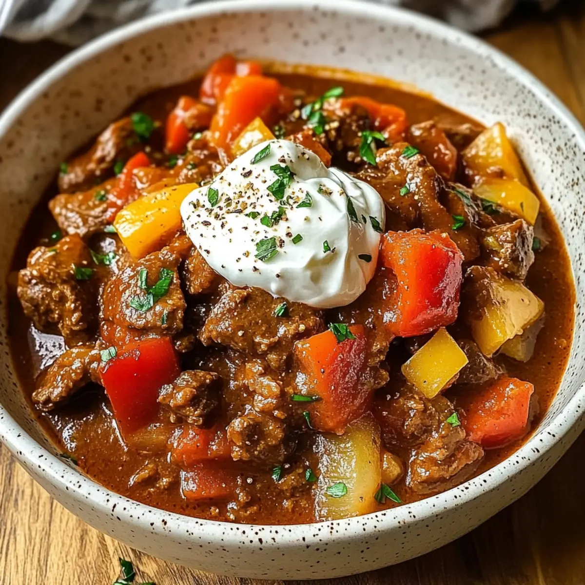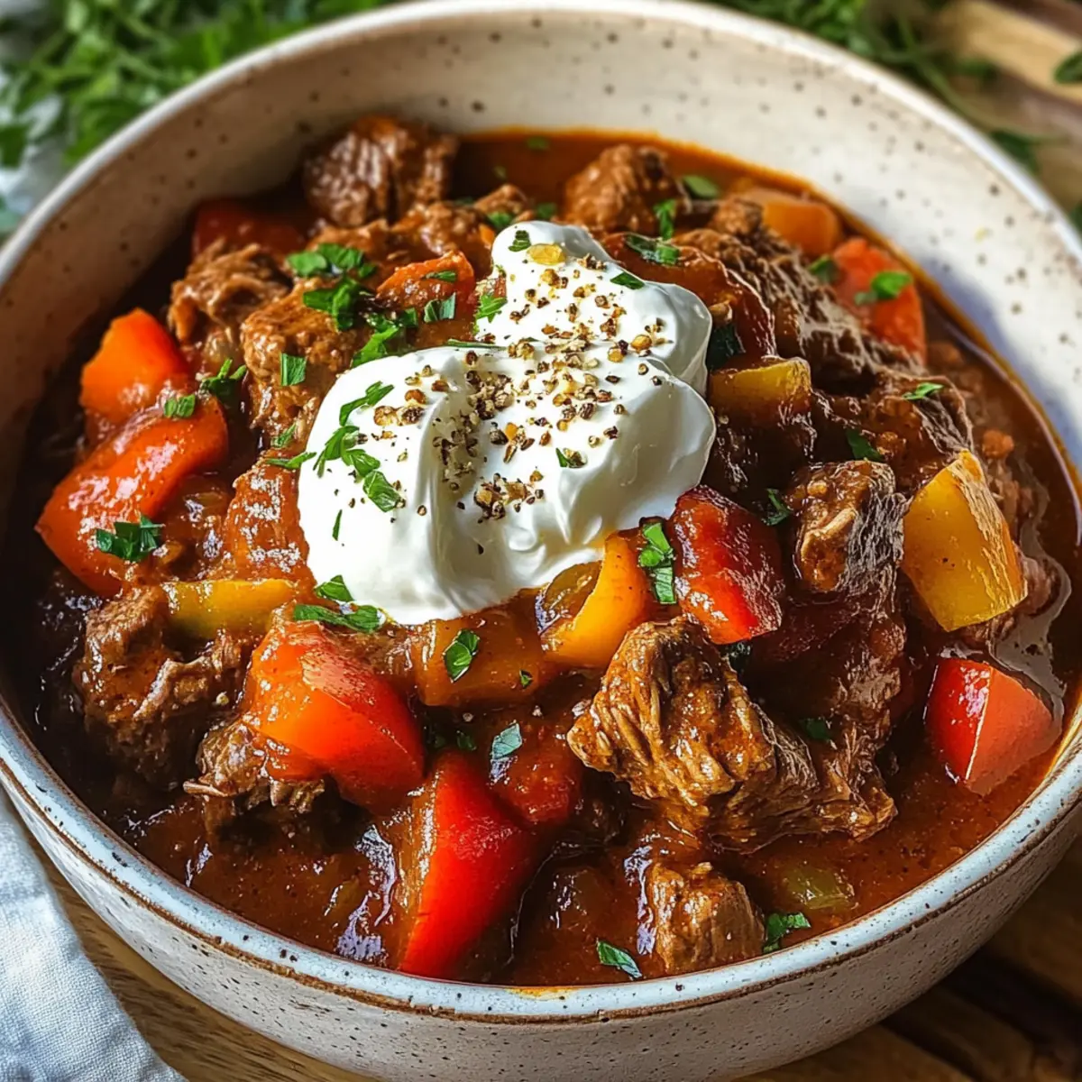 Einfachheit pur: Mit minimalem Aufwand zauberst du ein herzhaftes Gericht, das selbst Kochanfänger begeistert. Würzige Aromen: Die Kombination aus süßem und scharfem Paprika verleiht diesem Gulasch eine Geschmackstiefe, die zum Schwelgen einlädt. Geselligkeit garantiert: Perfekt für Familientreffen oder Dinnerpartys, da es große Portionen liefert und sicher viele begeistert. Stelle dir dazu ein Stück frisches Brot vor oder serviere es mit Griechische Bruschetta Der für eine geschmackliche Variation. Zeitersparnis: Mit dem Slow Cooker kannst du dich zurücklehnen, während das Gulasch sanft köchelt. Vielfältige Anpassungen: Experimentiere mit verschiedenen Paprika oder füge deine Lieblingsgemüse hinzu, um jedes Mal ein neues Geschmackserlebnis zu schaffen!