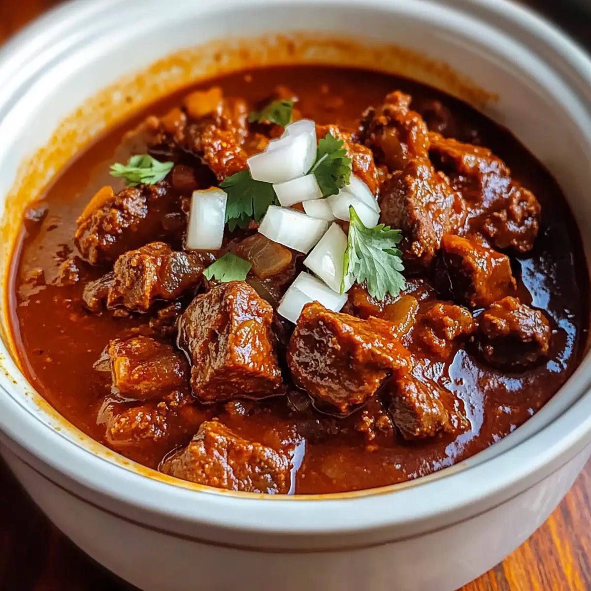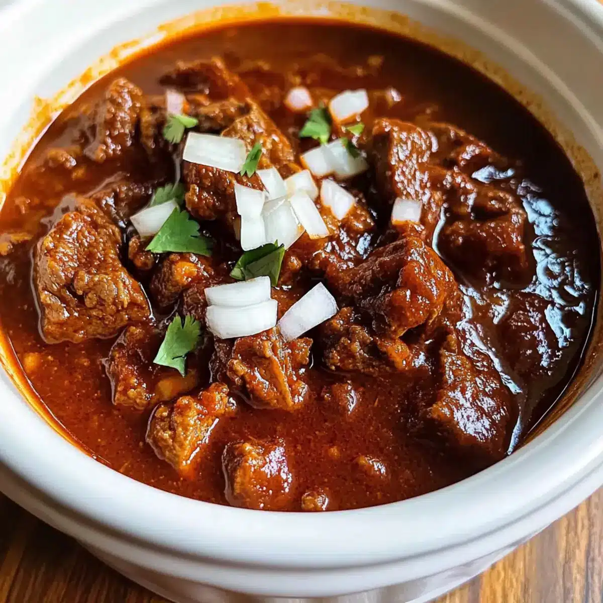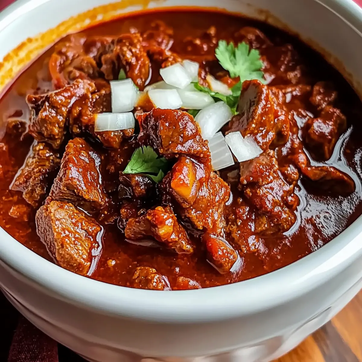 Eines Abends, während der Duft von zartem Fleisch in meinem Slow Cooker die Küche erfüllte, wurde mir bewusst, dass ich ein wahres Komfortessen zubereitete: Langsamkocher Chili Colorado. Diese köstliche Kombination aus Beef Stew und einer tiefgründigen, erdigen Chilisauce verwandelt jeden Bissen in ein warmes Umarmungsgefühl. Mit der praktischen Zubereitung im Slow Cooker erfordert dieses Rezept nur minimale Aufmerksamkeitszeit – perfekt für hektische Wochentage oder entspannte Mahlzeiten mit der Familie. Zudem ist es glutenfrei, sodass es auch für Gäste mit speziellen Ernährungsbedürfnissen geeignet ist. Bist du bereit, deine Küche in ein kleines mexikanisches Restaurant zu verwandeln? Lass uns gemeinsam mit dem Langsamkocher Chili Colorado ein Fest der Aromen kreieren!