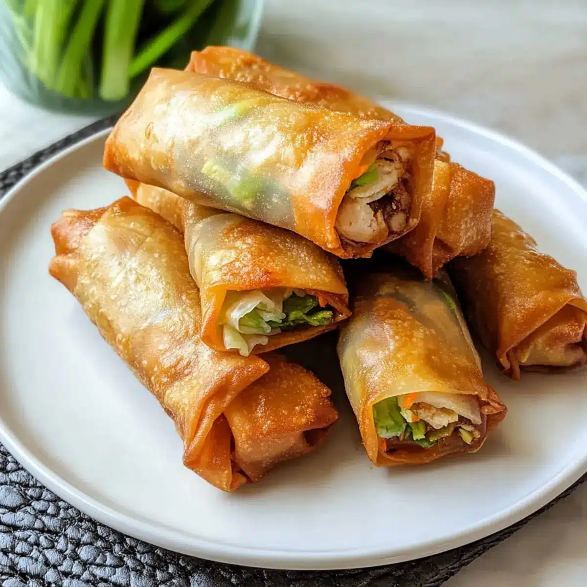 Der Duft von knusprigen Frühlingsrollen erfüllt die Küche, während ich mich darauf vorbereite, ein Rezept zu teilen, das sowohl Hüftgold als auch Genuss ohne schlechtes Gewissen vereint: Luftfritteuse Frühlingsrollen mit würziger Hühnerfüllung. Diese Version ist nicht nur leichter und gesünder, sondern auch blitzschnell zubereitet, perfekt für hektische Wochenabende oder wenn Gäste anstehen. Mit knusprigen, goldbraunen Hüllen und einer Füllung, die nach jedem Bissen die Geschmacksknospen verwöhnt, sind sie genau das Richtige, um alte Fast-Food-Gewohnheiten hinter sich zu lassen. Bereitet euch darauf vor, in eine Welt von Aromen und Texturen einzutauchen, die euren Gaumen verzaubern. Welche Variationen werdet ihr ausprobieren?