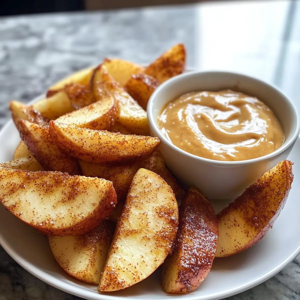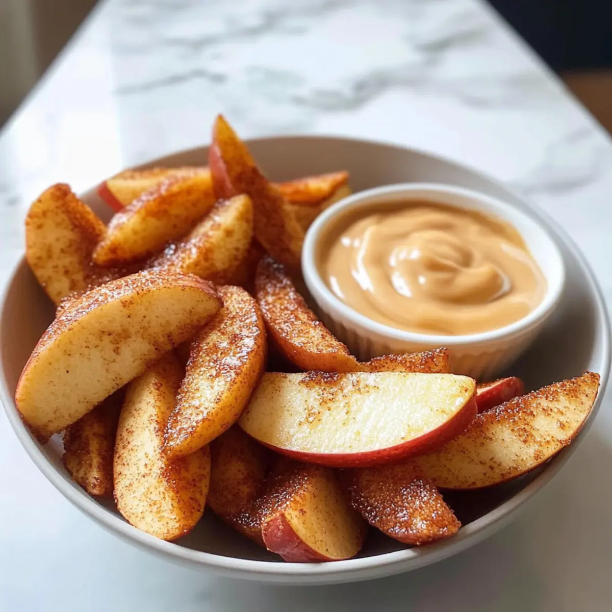 Zögere nicht, diese luftfrittierte Apfelspalten mit dem himmlischen Karamell-Dip auszuprobieren!