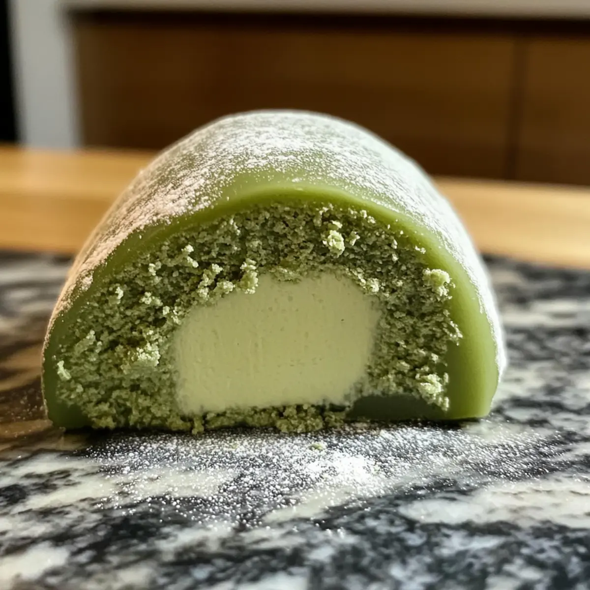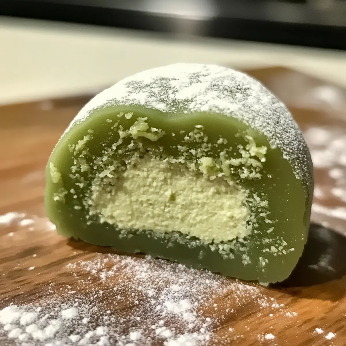 - Bestäuben mit Matcha-Pulver – optional für eine ästhetische Note und Geschmacksverstärkung des fertigen Daifuku.