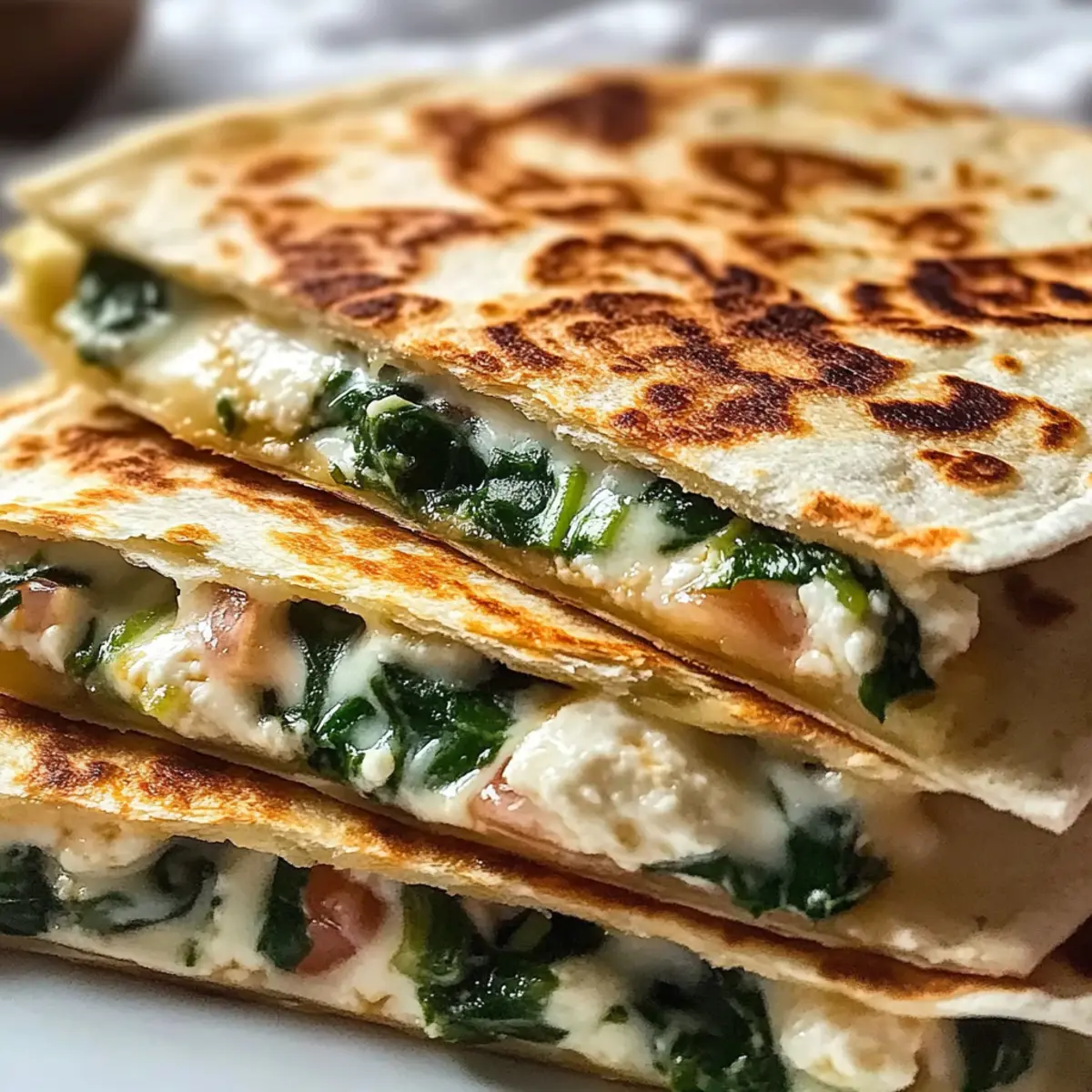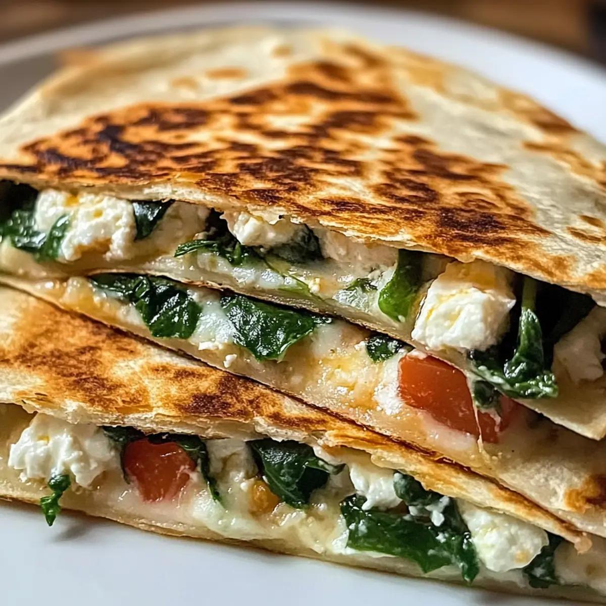 Mediterrane Quesadilla mit Spinat, Feta, Mozzarella
