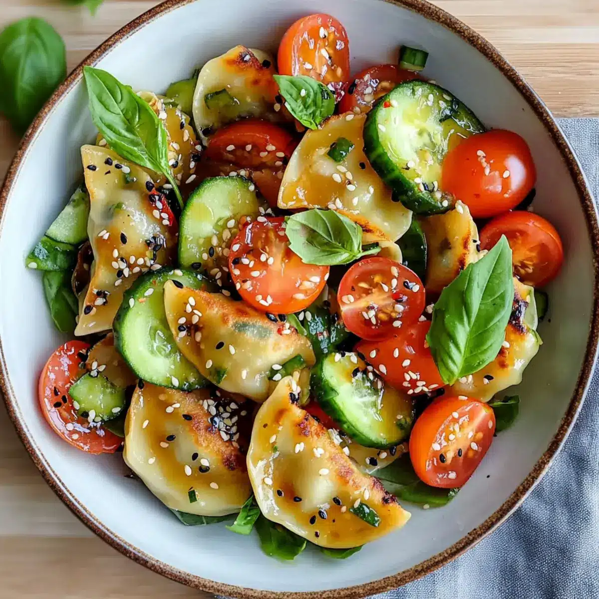 - Frische Zutaten wählen: Achte darauf, frische Heirloom-Tomaten und knackige Gurken auszuwählen, um die beste Textur und Geschmack in deinem Potsticker-Salat zu gewährleisten.