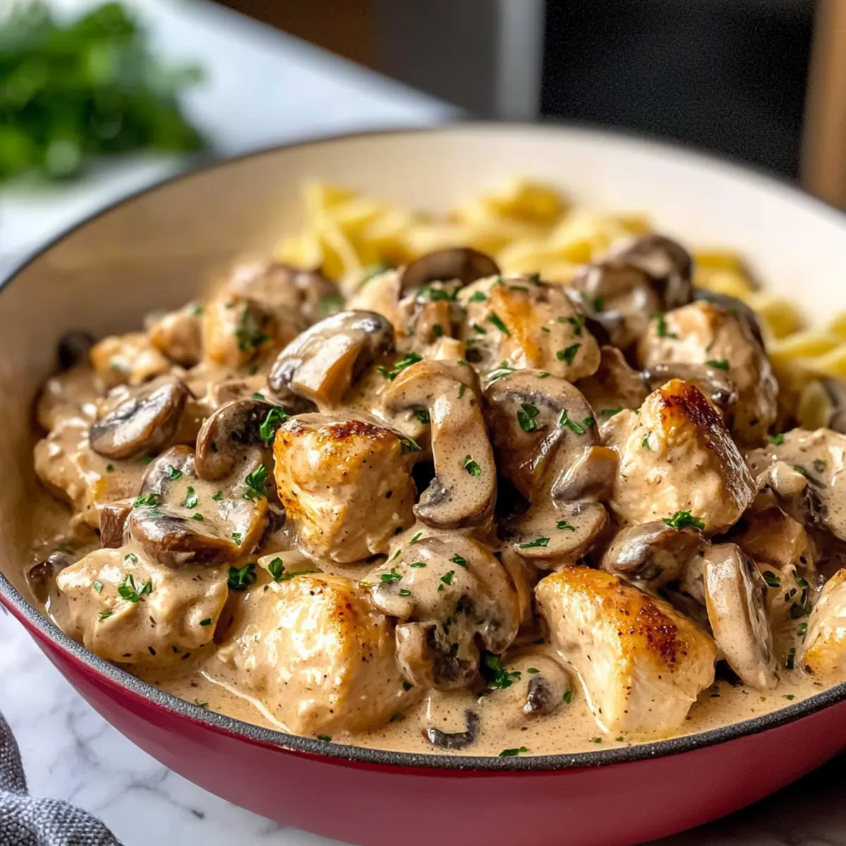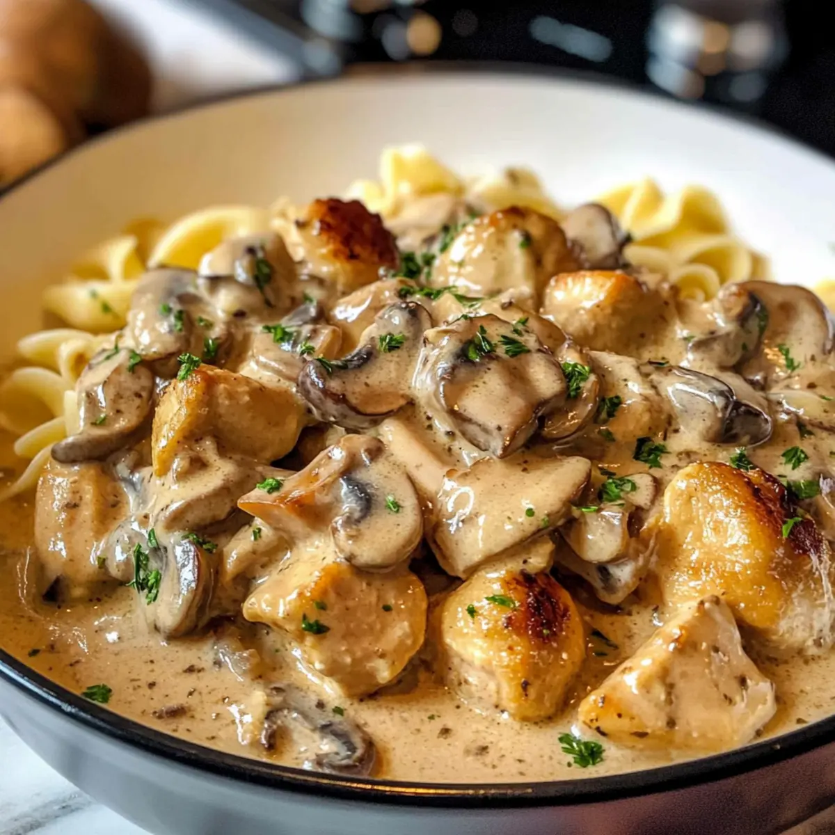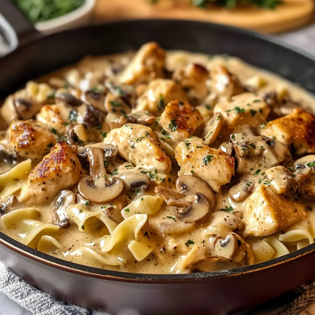- Serviere das Hühner-Stroganoff über Eiernudeln oder einer anderen Beilage.