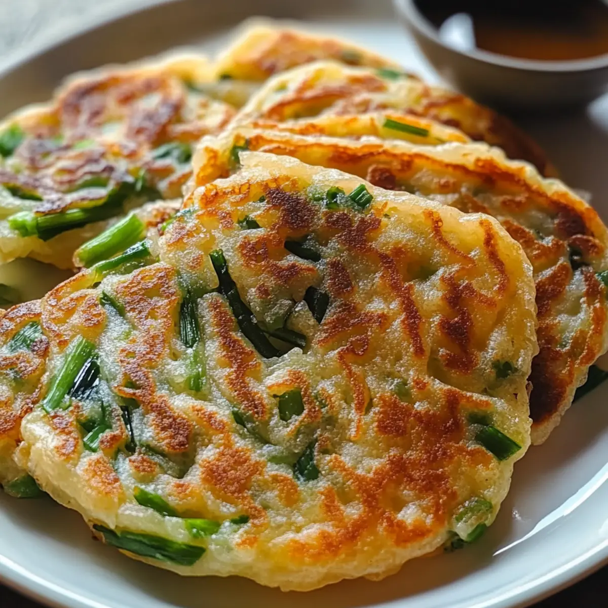 Bereite deine Reispapier-Frühlingszwiebel-Pfannkuchen im Voraus vor, um Zeit während der Woche zu sparen! Du kannst die Füllung aus Frühlingszwiebeln, Salz, weißem Pfeffer und Sesamöl bis zu 3 Tage im Voraus zubereiten und im Kühlschrank aufbewahren. Die Reispapierblätter können ebenfalls vorbereitet werden; lagere sie in einem feuchten Tuch, um ein Austrocknen zu verhindern. Wenn du bereit bist zu servieren, forme die Pancakes und brate sie kurz in heißem Öl für 2 Minuten pro Seite, um die perfekte Knusprigkeit zu erreichen. Achte darauf, dass du sie direkt nach dem Braten genießt, um das köstliche Aroma und die texturierte Füllung zu bewahren – einfach, lecker und perfekt für geschäftige Abende!