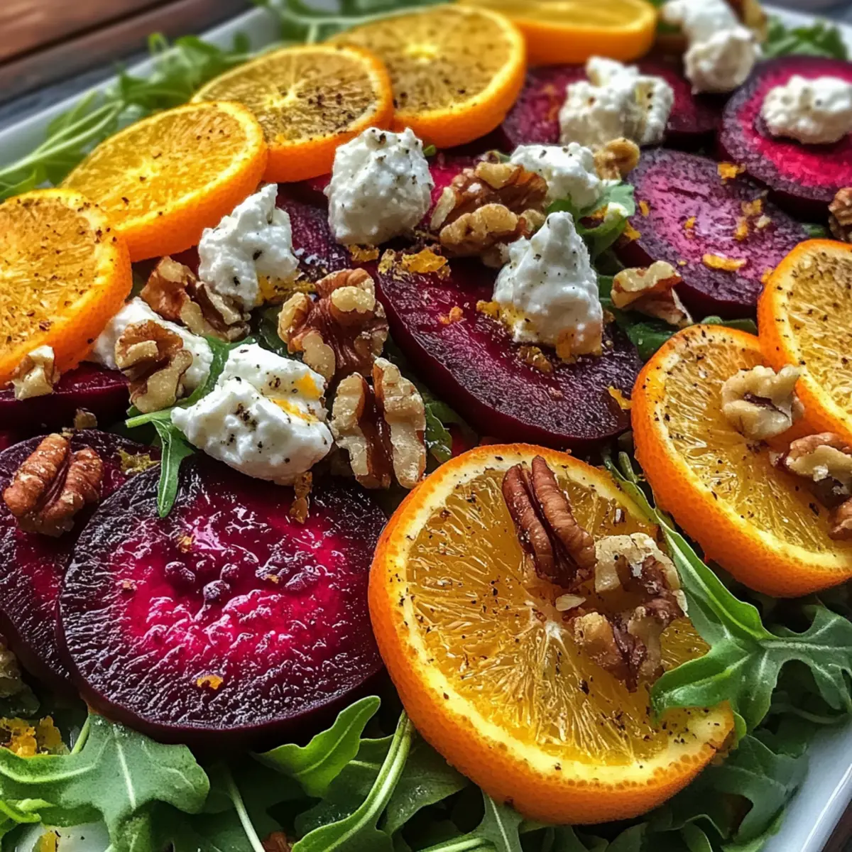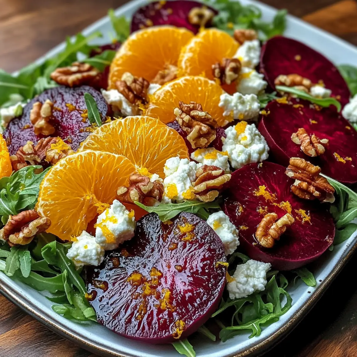 Für eine ansprechende Präsentation schichte die Zutaten so, dass die leuchtenden Farben sichtbar sind. Platziere die Rote Bete in der Mitte und fächer die Zitrusfrüchte harmonisch drumherum an. Die Kombination von Farbe und Textur wird deine Gäste beeindrucken und macht den Salat zu einem echten Blickfang auf dem Tisch.