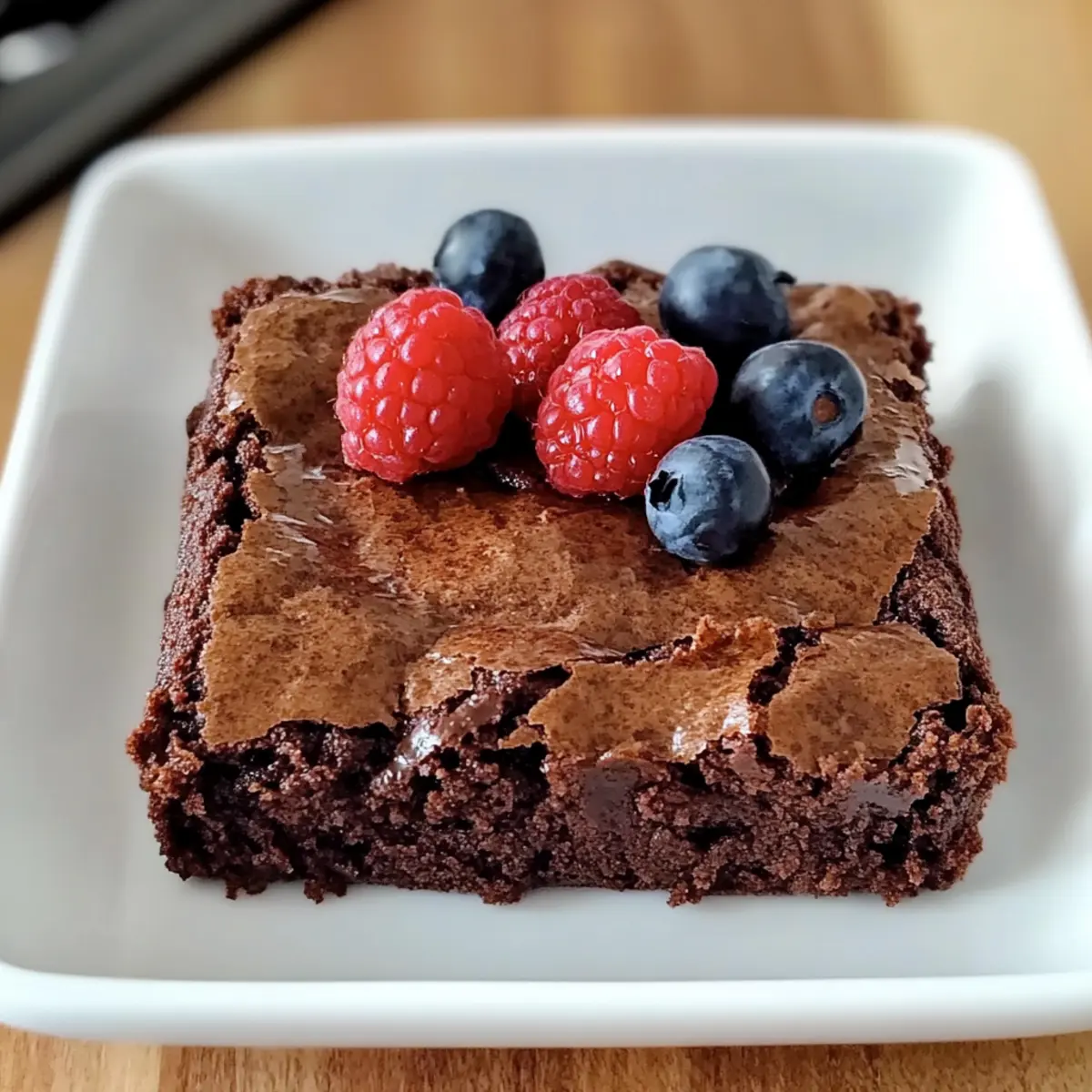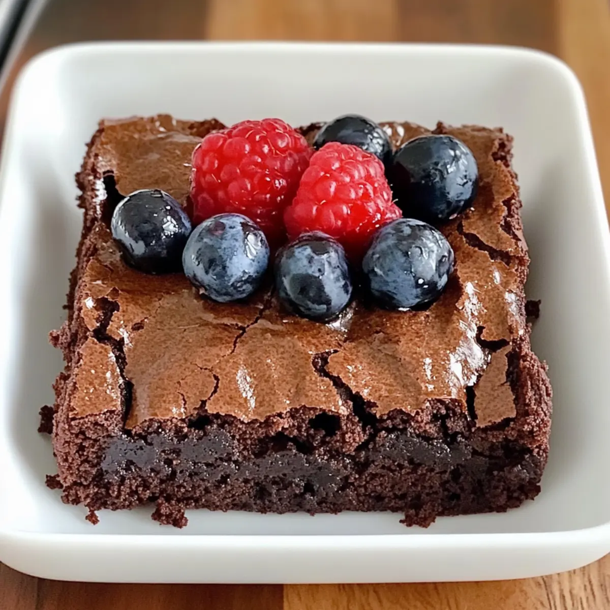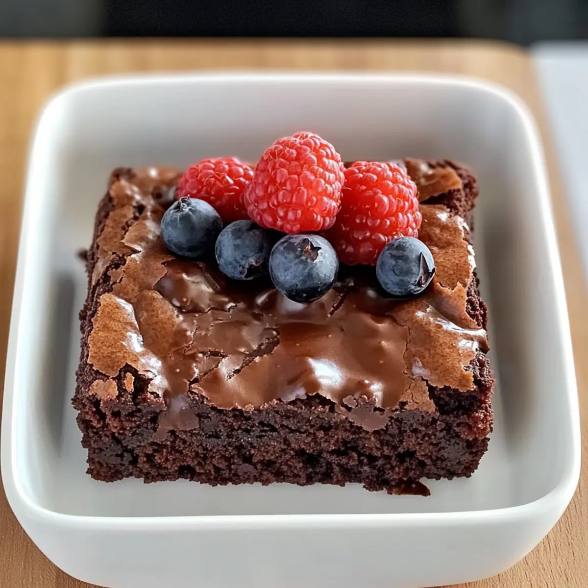 - Serviere den Brownie warm mit frischen Beeren oder einem Klecks Joghurt.