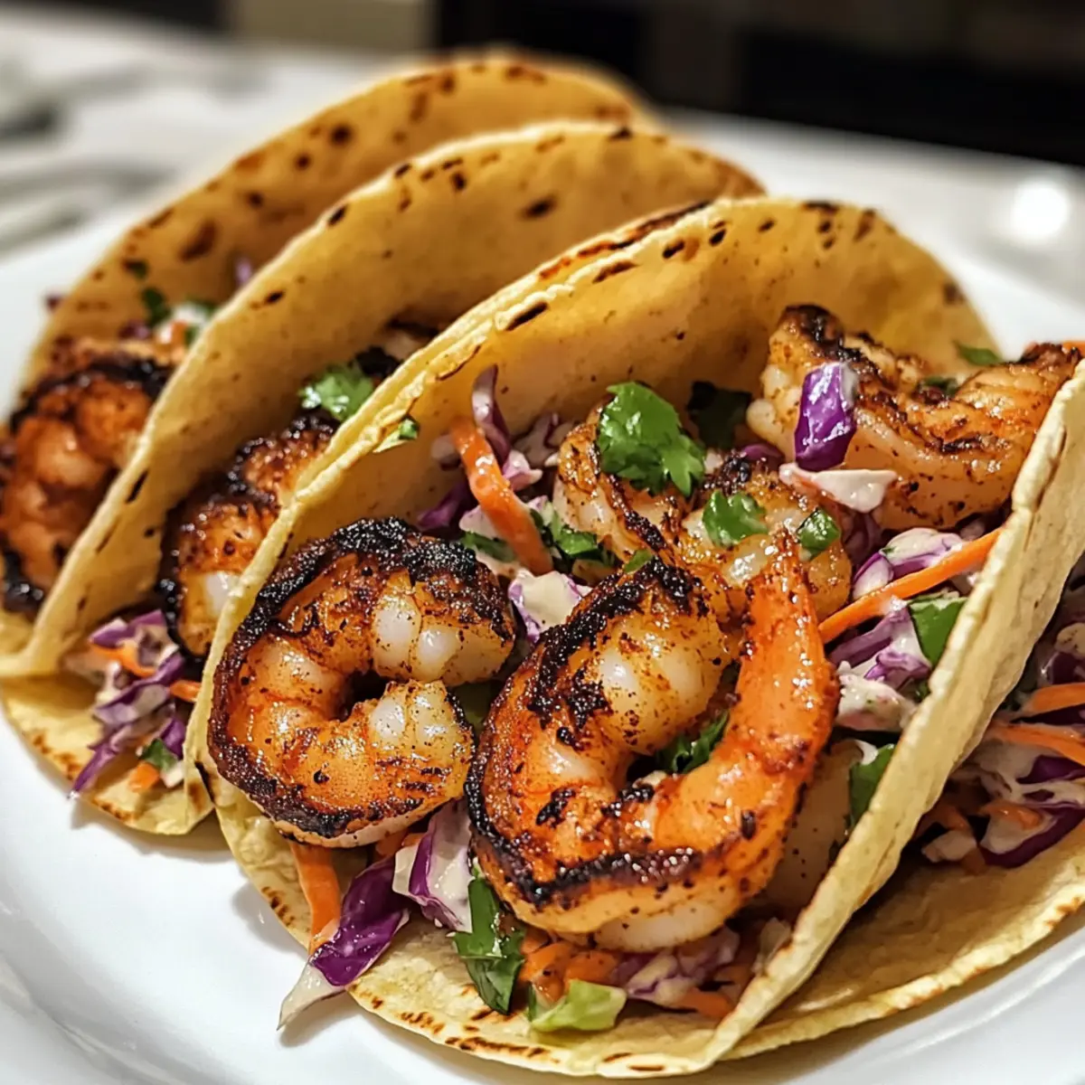 Schwarzgebratene Garnelen Tacos mit Kohl салат