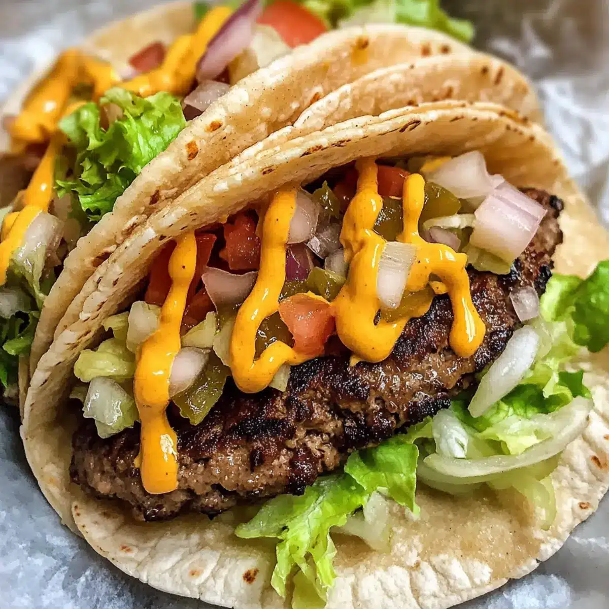 Lassen Sie Ihrer Kreativität freien Lauf, während Sie diese köstlichen Smash Burger Tacos nach Ihrem Geschmack anpassen!