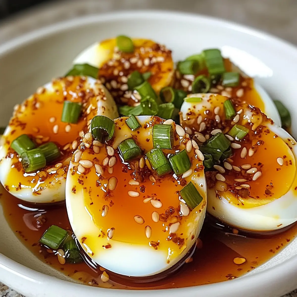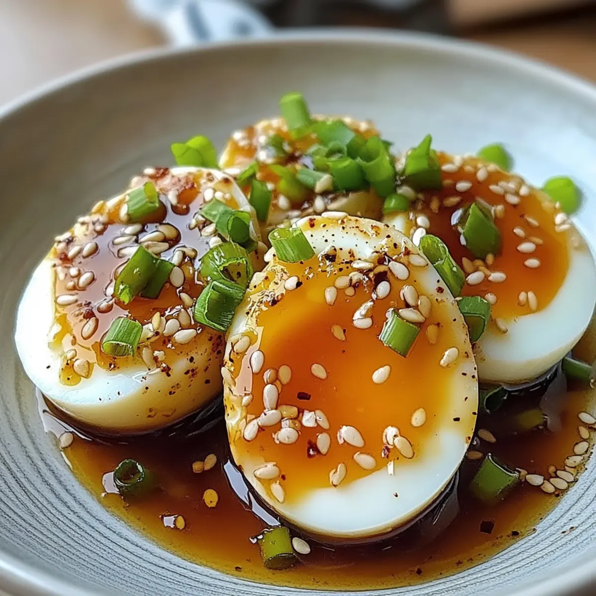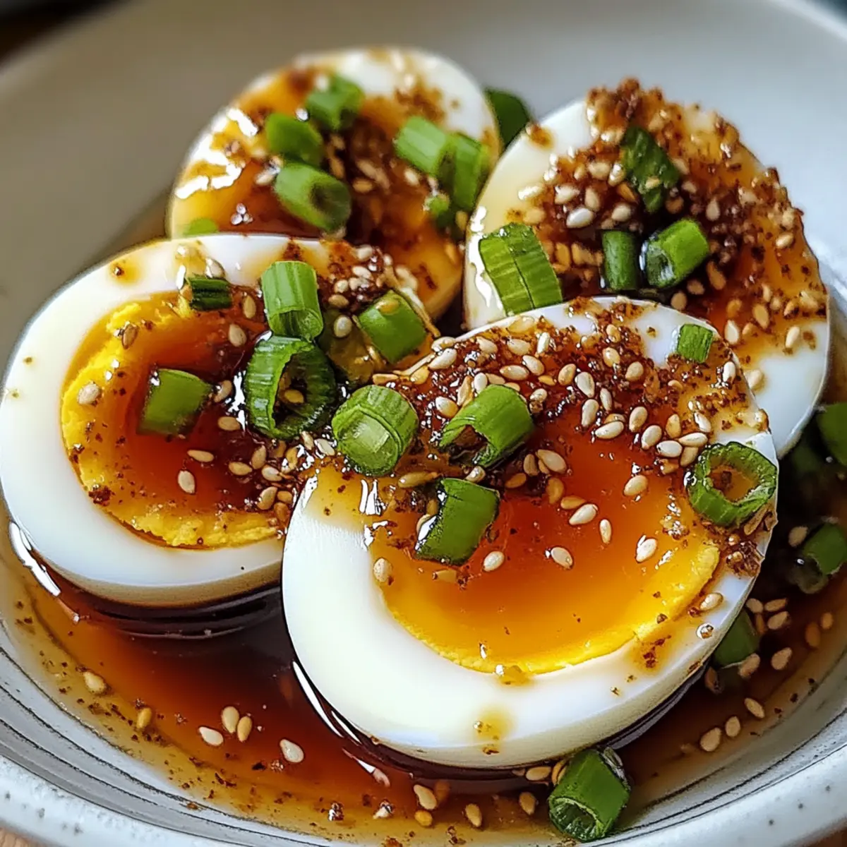 Diese unwiderstehlichen Soja-marinierte Eier sind der perfekte Ausgangspunkt für eine köstliche Mahlzeit, die alle Sinne anspricht.