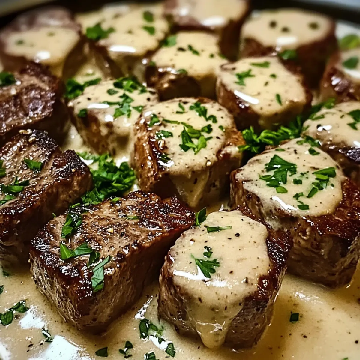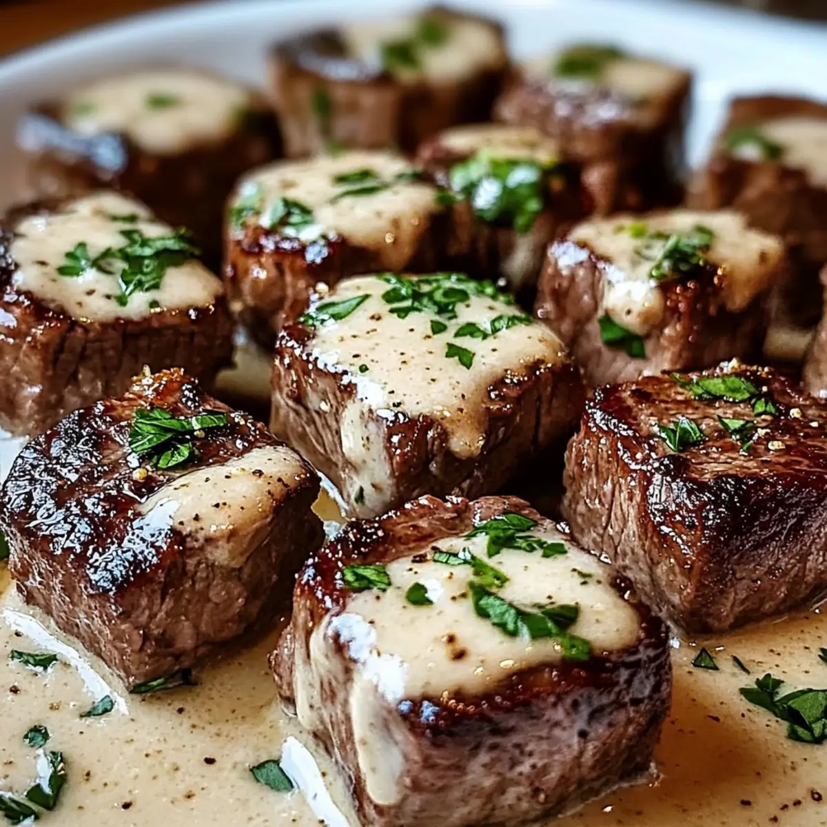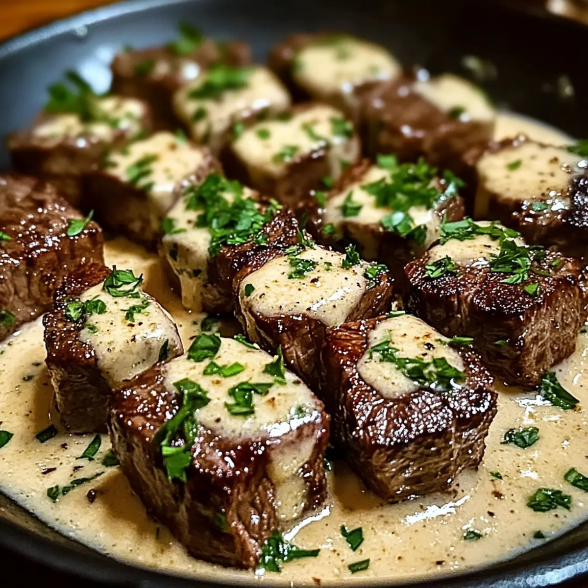 Tender Steakbites in Knoblauchbutter und Parmesan Sauce