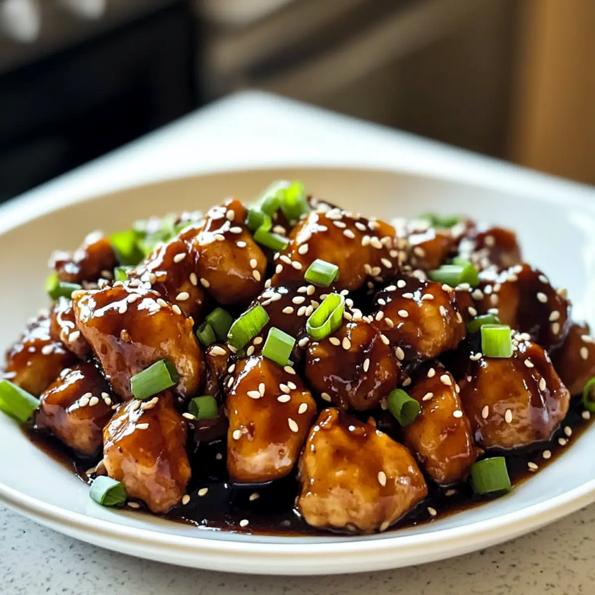 - Fleischalternative: Tausche das Hühnchen gegen Tofu oder Tempeh aus, um eine köstliche vegetarische Version zu kreieren. Tofu auf die gleiche Weise anbraten, bis er goldbraun ist – der Geschmack der Sauce wird wunderbar aufgenommen.