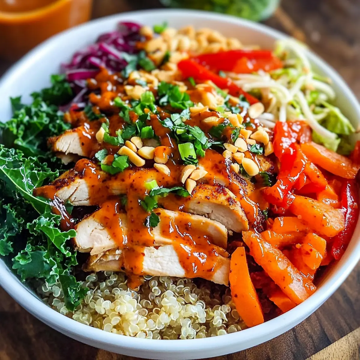 Thailändische Süßscharfe Chili-Hühnchen Buddha-Schalen