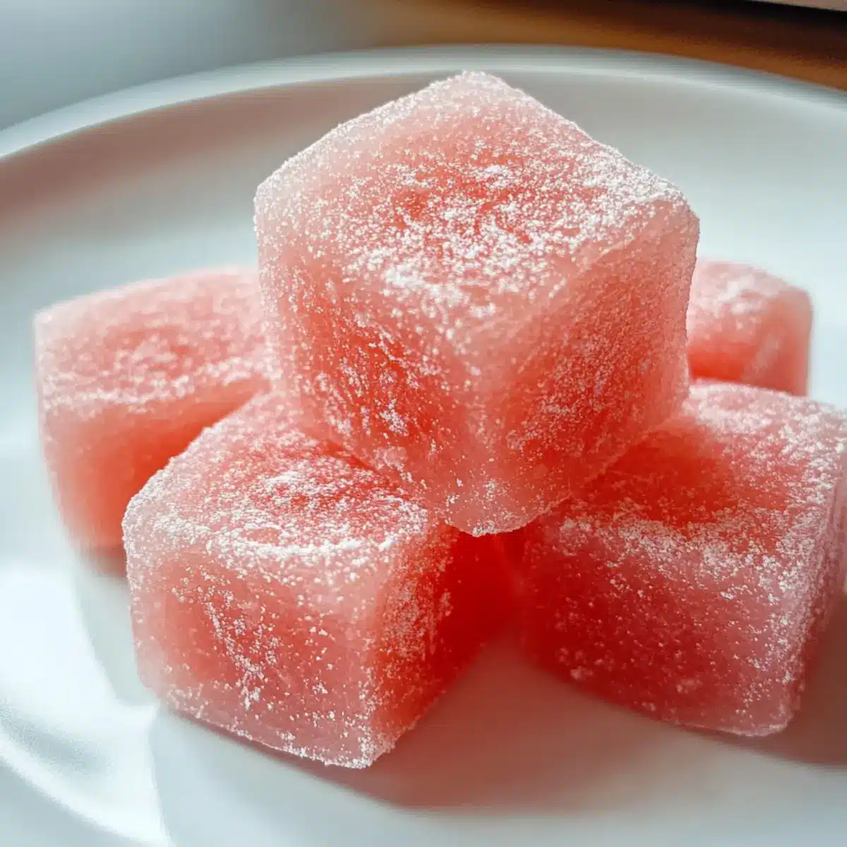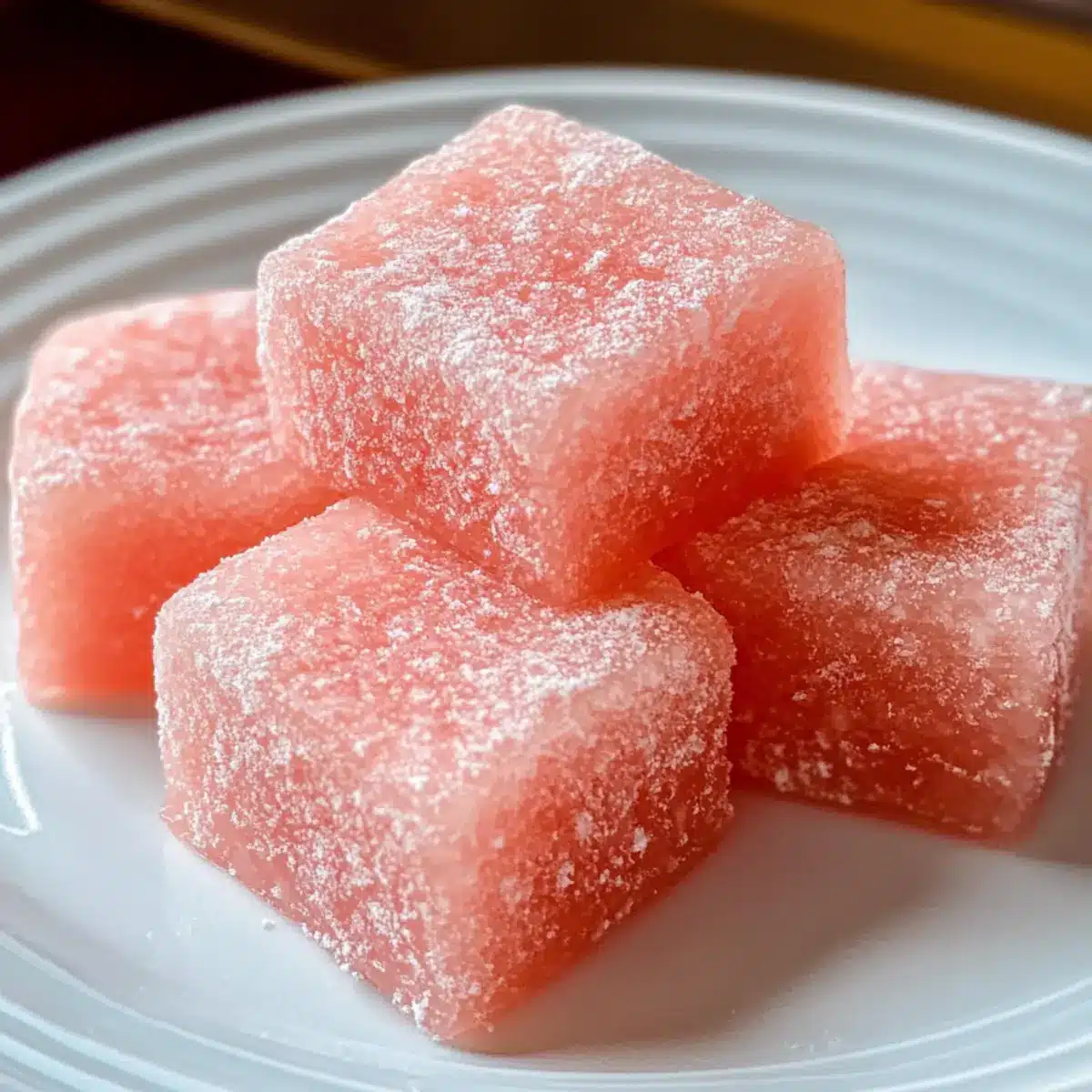 Genieße die erfrischende Süße von Wassermelonen-Mochi als Teil eines leichten und harmonischen Dessertangebots, das den Sommer perfekt einfängt.