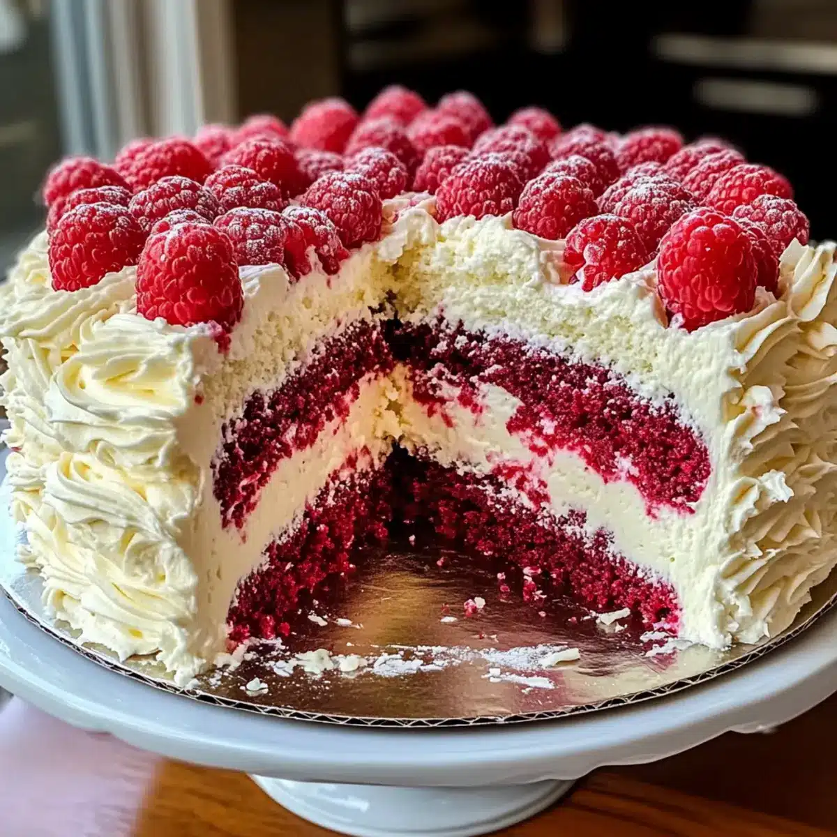 Raumtemperatur: Halte die Torte nicht länger als 2 Stunden bei Raumtemperatur, um die Frische der Himbeeren und der Sahne zu erhalten.
