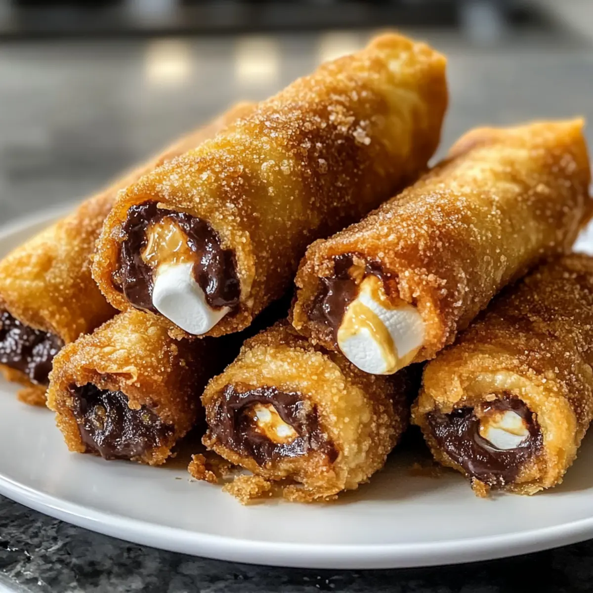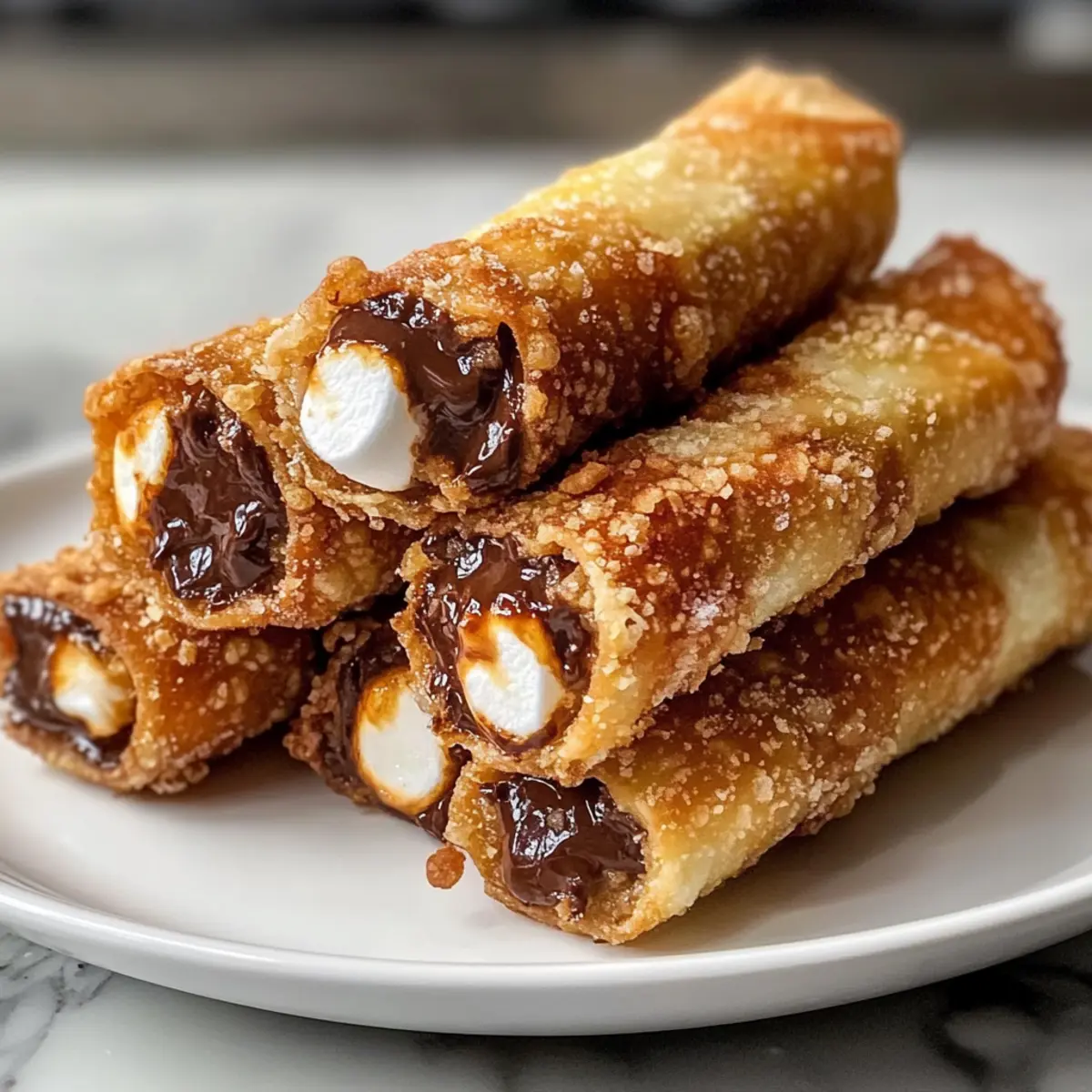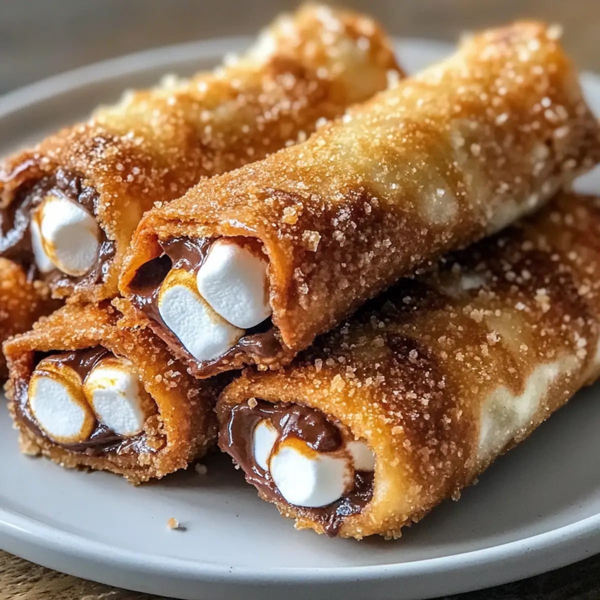 - Variation wagen: Experimentiere mit verschiedenen Füllungen wie Erdnussbutter oder aromatisierter Schokolade, um deine Zimt S’mores Eirollen noch interessanter zu machen.