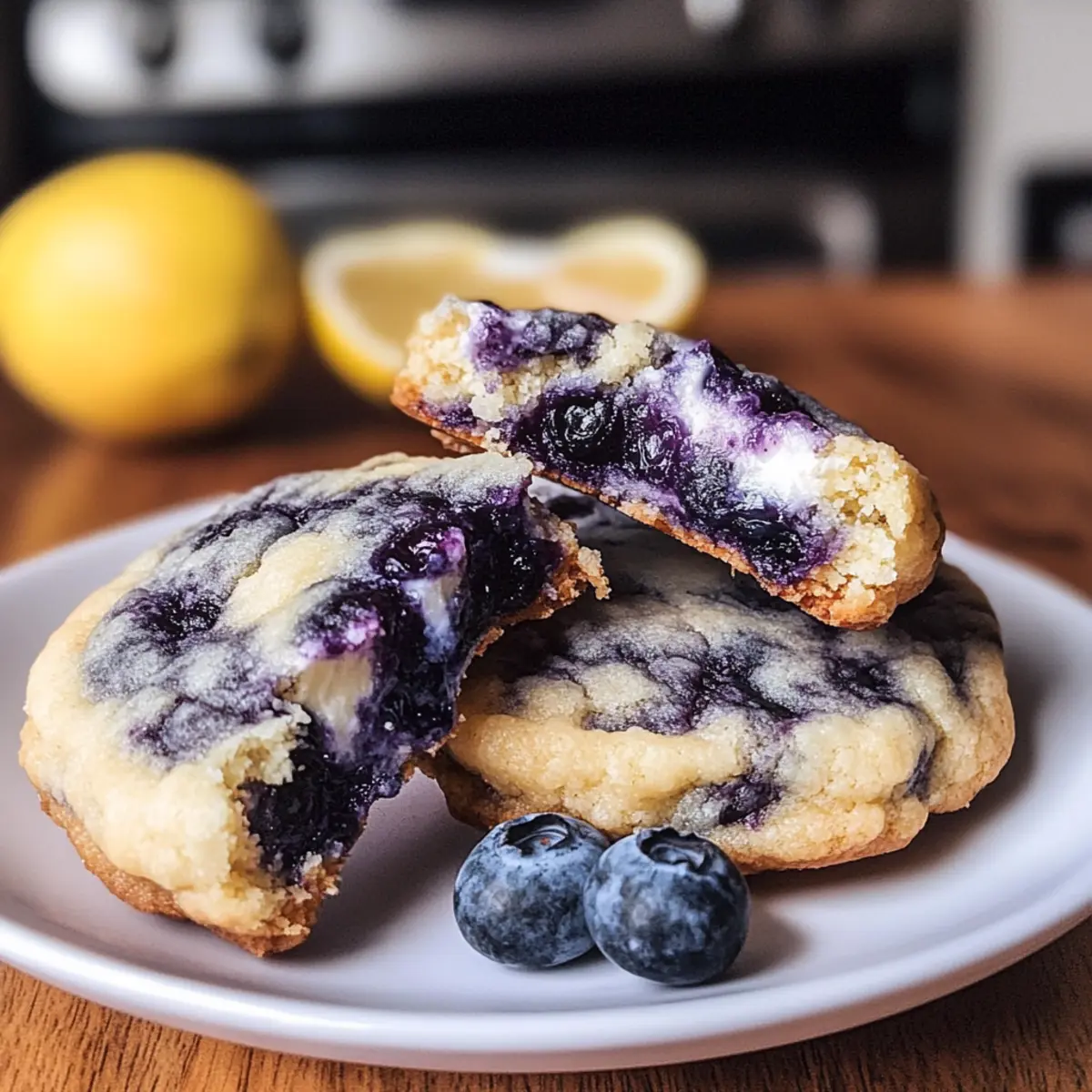 Einzigartiger Geschmack: Diese Zitronen-Blaubeer-Käsekuchen-Kekse kombinieren die beste Aromen von zitrusfrischen Zitronen und süßen Blaubeeren in einem praktisch handlichen Format.